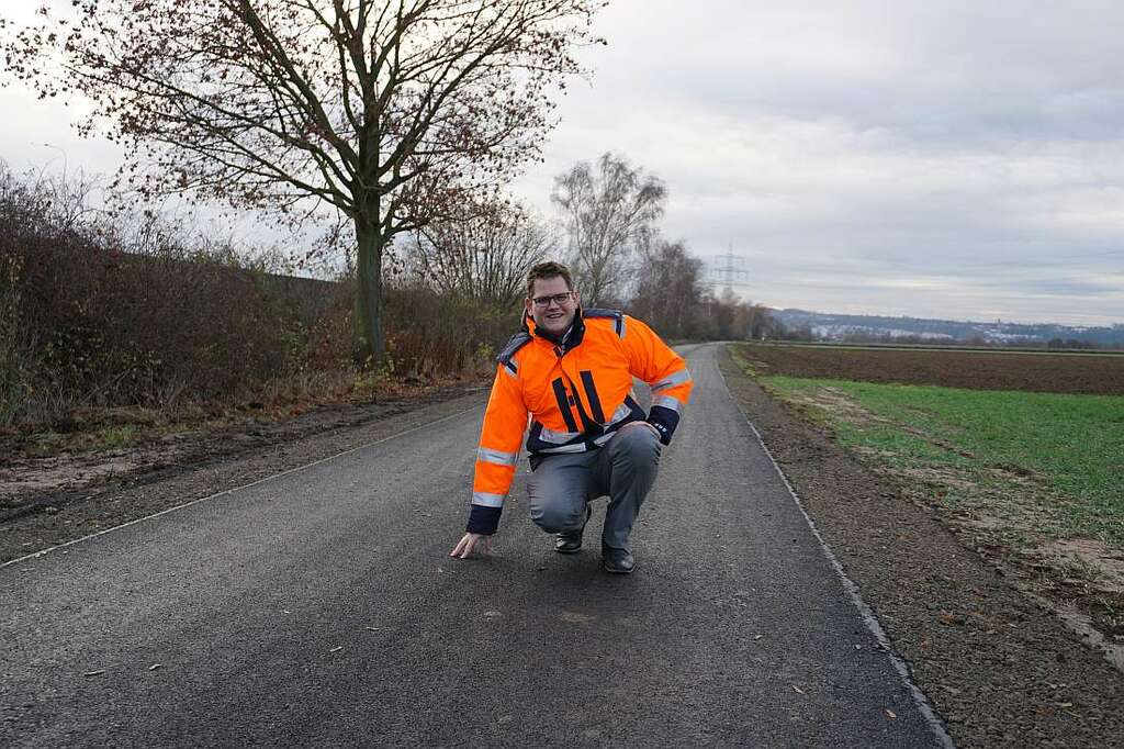 Foto: Erster Stadtrat Sebastian Wysocki freut sich über den weiteren Ausbau des Fuß- und Radwegs parallel zur B3.