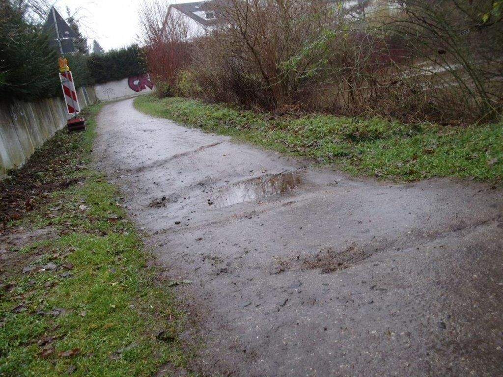 Foto: Am Nidderuferweg bilden Absenkungen Gefahrenstellen, die ab dem 12. April ausgebessert werden.