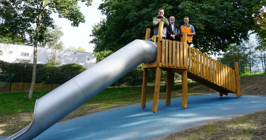 Gemeinsam mit Gronaus Ortsvorsteher Karl Peter Schäfer und dem Betriebsleiter der Grünflächenpflege der Stadt, Alexander Kasimir, war Wysocki nach Fertigstellung der Maßnahme und Freigabe vor Ort. Für Ortsvorsteher Schäfer ist die Fertigstellung der Modernisierungsmaßnahme eine große Freude. „Die Gronauer Familien waren zuletzt positiv ungeduldig, denn wir alle konnten ja sehen, was hier gemacht wurde. Die Kinder konnten es daher kaum erwarten, endlich die neuen Spielgeräte auszutesten und sich mit ihren Freunden auf dem Spielplatz zu treffen. Ich danke der Stadt daher sehr, dass die Maßnahme so gut und zügig umgesetzt werden konnte“, erklärt Karl Peter Schäfer.