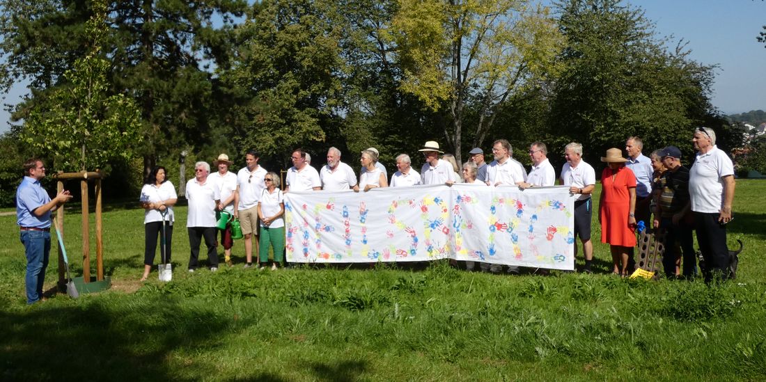 Das Jubiläum zu 75 Jahre Heilsberg war und ist ein voller Erfolg. Daran haben viele helfende Hände ihren Anteil. Als Dank und als eine bleibende Erinnerung hat die Stadt Bad Vilbel, vertreten durch Bürgermeister Sebastian Wysocki und den Ersten Stadtrat Bastian Zander, selbst Teil des Orga-Teams, anlässlich des 75-jährigen Jubiläums des Bad Vilbeler Stadtteils einen Erinnerungsbaum gepflanzt.