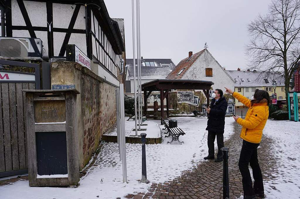 Direkt am Hermann-Freisleben-Platz können Bürgerinnen und Bürger den Service nun nutzen. Bürgermeister Dr. Thomas Stöhr und Ortsvorsteherin Irene Utter machten umgehend den Test.