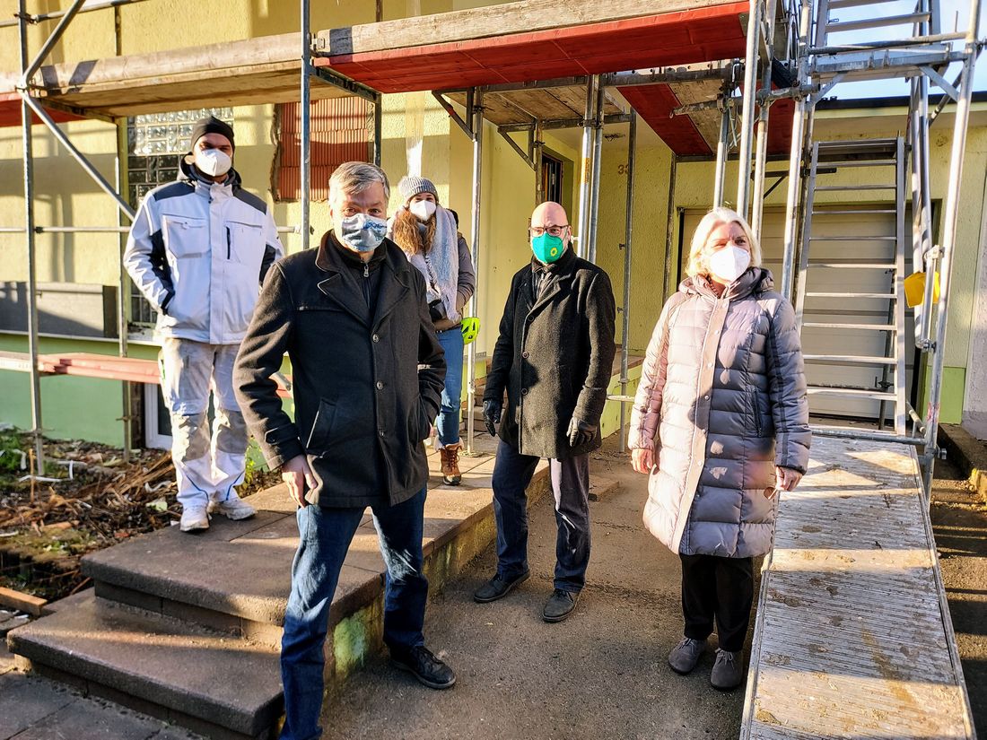 Clemens Breest besichtigte in Massenheim mit den Grünen Ortsbeiratsmitgliedern Marianne Reichel und Peter Paul das Sanierungsprojekt von Jennifer und Marius Meier. Das Einfamilienhaus aus den 1960er Jahren wurde zuletzt von nur einer Person bewohnt. Aufgrund der Öl-Heizung wurden jährlich 60t Kohlendioxid ausgestoßen. Aktuell wird das Haus energetisch saniert und zu drei Wohneinheiten umgebaut. Neben der Dämmung der Fassade wird auf der Dachfläche eine PV-Anlage montiert. Der Solarstrom wird in eine Batterie eingespeist, so dass regenerativer Strom auch bei Dunkelheit zur Verfügung steht. Geheizt werden die Wohnungen elektrisch mit Infrarot-Heizungen. Das Warmwasser wird mittels Wärmepumpe erhitzt. Diese Maßnahmen mindern den klimaschädlichen Kohlendioxid-Ausstoß um mehr als 90 %. Gegenüber den derzeitigen Heizkosten für Öl oder Gas müssen die zukünftigen Mieter deutlich weniger für Wärme und Strom ausgeben. Clemens Breest lobt das Projekt: „An diesem Objekt wird vorbildlich deutlich, welche enormen Vorteile sich durch energetische Sanierung und Umbau des Altbestandes erzielen lassen. Es entsteht bezahlbarer Wohnraum ohne zusätzliche Flächenversiegelung und zudem wird das Klima geschützt. Solche Projekte erhalten von mir als Bürgermeister die volle Unterstützung. Deswegen erkundige ich mich gerne vor Ort, ob es Probleme gibt.“