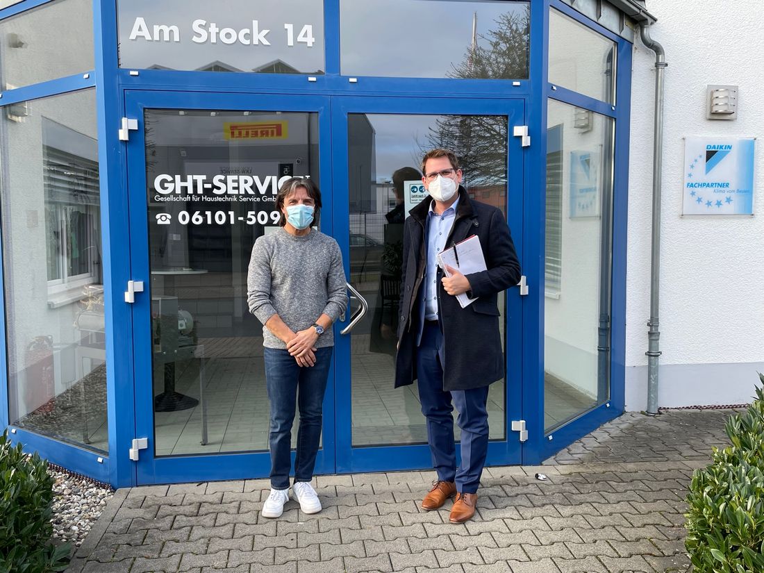 Bürgermeisterkandidat Sebastian Wysocki (CDU) hat im Rahmen seiner #ZukunftsTour die Firma GHT-Service in Massenheim besucht und sich bei Geschäftsführer Jens Kern über aktuelle Trends und Herausforderungen in der Branche informiert.