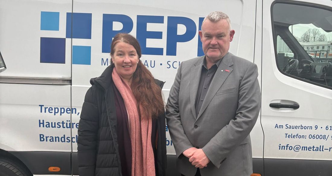 Die Echzeller Bürgermeisterkandidatin von Bündnis 90/Die Grünen, Christa Degkwitz, traf sich zu einem konstruktiven Gespräch mit Alexander Repp, Präsident der Arbeitgeberverbände des hessischen Handwerks e.V. (AHH) und stellvertretender Kreishandwerksmeister in dessen Metallbaubetrieb am Sauerborn in Echzell. Im Fokus standen die aktuelle Situation des Handwerks sowie die Entwicklungen in der Gemeinde Echzell.