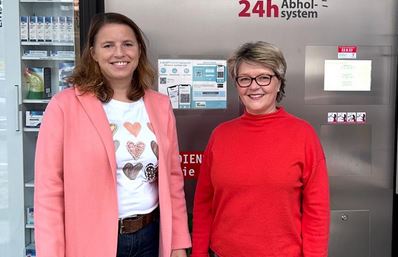 SPD-Bürgermeisterkandidatin Tatjana Lange hat Im Rahmen ihrer Gespräche mit Gewerbetreibenden in Echzell die örtliche Linden Apotheke besuchtund sprach mit Inhaberin Frau Gabriele Koch über aktuelle Veränderungen und Herausforderungen.