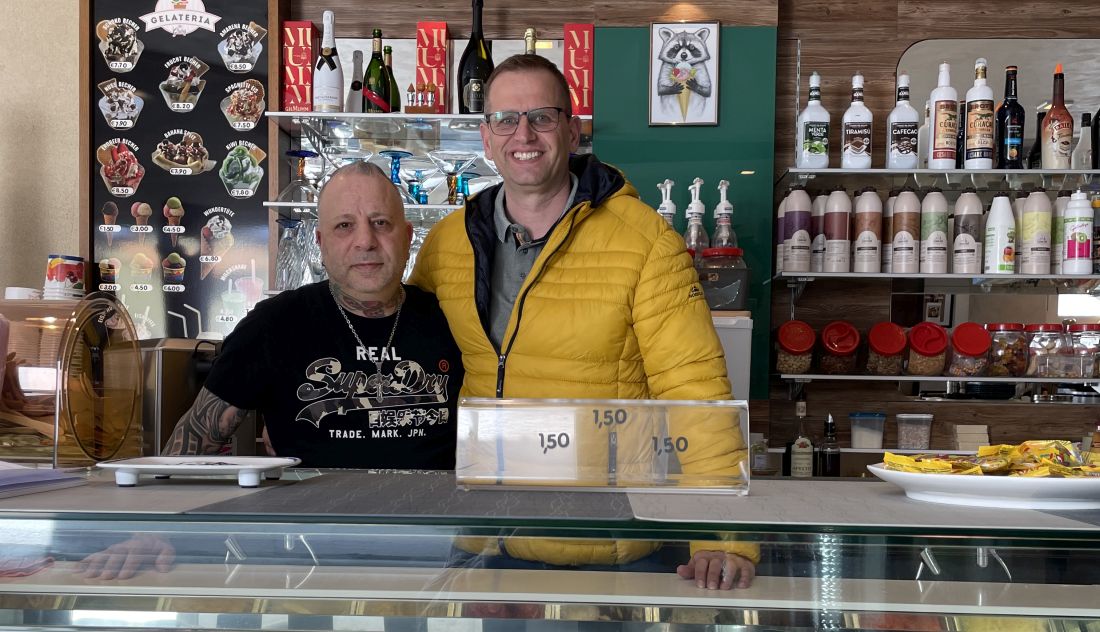 Echzell. Raik Noll, CDU-Bürgermeisterkandidat für Echzell, setzt seine erfolgreiche Gewerberunde fort und besuchte in dieser Woche das „Café Gelateria da Giusy" in Echzell. Hier traf er auf Giuseppe Grandinetti, in der Gemeinde besser bekannt als „Giusy", der das Café sowie die Bar „Deutsches Haus by Giusy" betreibt.