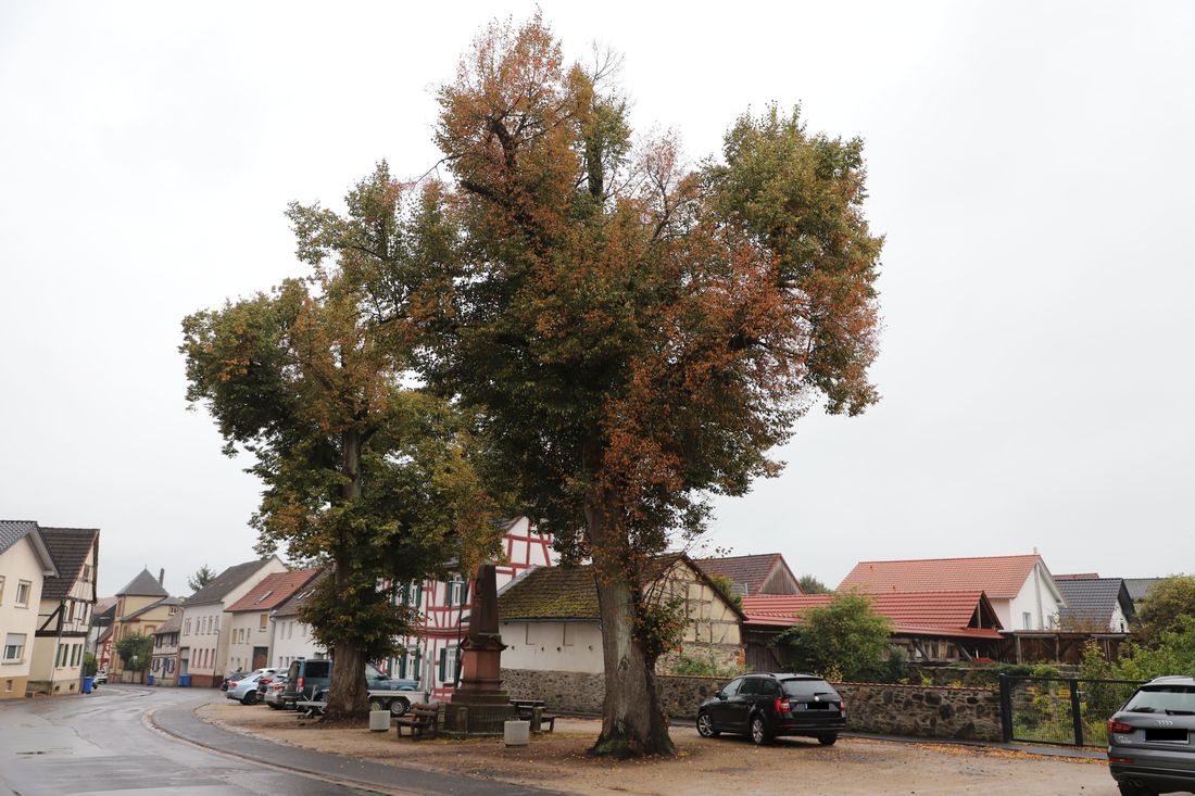 Die Tage der beiden Linden am Ehrenmal in der Echzeller Lindenstraße (Kreisstraße 181) sind gezählt – sie müssen im Oktober gefällt werden. Das teilt die Untere Naturschutzbehörde des Wetteraukreises mit. Die Bäume sind seit 1986 als Naturdenkmale ausgewiesen, weshalb sie in die Zuständigkeit der Behörde fallen, die ihren Zustand laufend überwacht. Die in diesem Jahr gute Belaubung täuscht über ihre schlechte Gesundheit hinweg: Die Bäume leiden unter vermutlichen Wurzelschäden sowie schlechten Standortbedingungen.