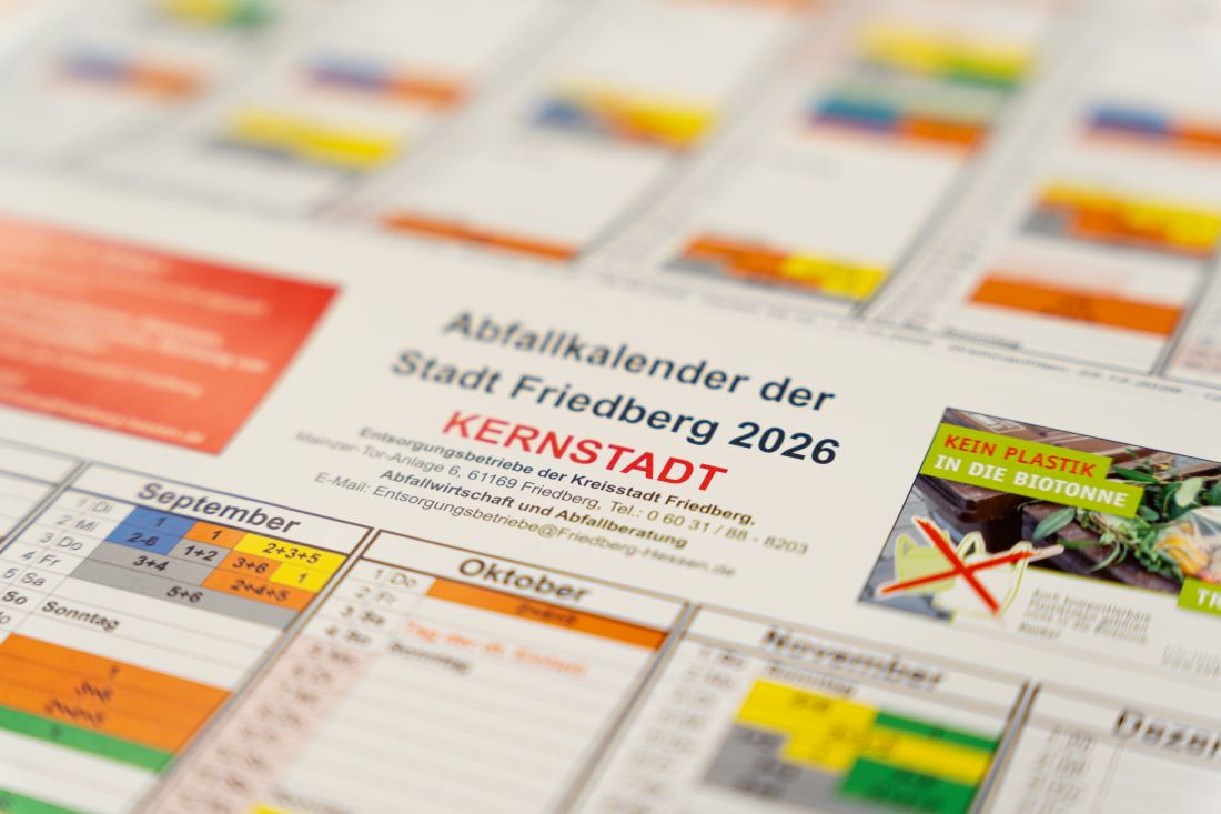 Im Zuge der Überarbeitung der Abfallbezirke wurden die Straßen Am Wartfeld und Raiffeisenstraße künftig dem Bezirk 4 zugeordnet. Auch die Wilhelm-Leuschner-Straße wurde neu eingeteilt: Die Hausnummern 1 bis 11 gehören ab 2026 zum Bezirk 3, ab Hausnummer 12 verbleibt die Straße weiterhin im Bezirk 4. Für die betroffenen Haushalte ändern sich damit die Abfuhrtage für Restmüll, Bioabfall, Papier, Gelbe Tonne und Gartenabfälle. Die betroffenen Anwohner erhalten hierzu gesonderte Informationsschreiben der Entsorgungsbetriebe. Der Abfallkalender 2026 wird seit dem vergangenen Wochenende nach und nach von der Jugendfeuerwehr in der Kernstadt sowie in den Stadtteilen verteilt. Zusätzlich steht der Kalender online zur Verfügung, sodass alle Haushalte ihre Abfuhrtermine frühzeitig einsehen können.