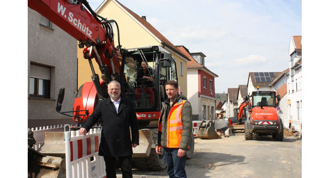 Bürgermeister Dirk Antkowiak und Tobias Schmidt, Leiter des Tiefbauamts, haben sich über die ersten Baufortschritte in der Friedberger Straße in Ockstadt informiert. Zur Erinnerung: Unter anderem wird die Fahrbahn einheitlich breit ausgebaut, die Gehwege werden verbreitert und vier Bushaltestellen barrierefrei umgebaut. Das Projekt ist – nach Mühlweg und dem anstehenden Baubeginn Im Wingert – ein weiterer wichtiger Schritt aus dem Sanierungsstau im Straßenbau der vergangenen Jahrzehnte, stellt Antkowiak heraus.