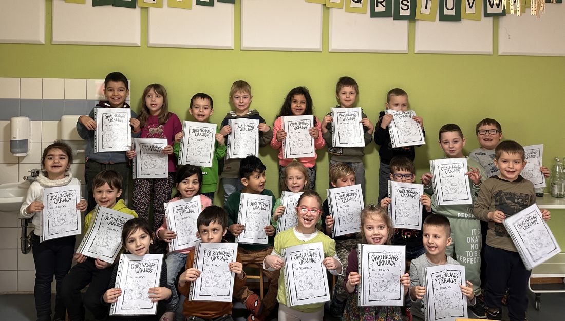 Nach dreimonatiger Übung im Heft der phonologischen Bewusstheit - Sprachtraining mit Wuppi , haben es die Kinder geschafft, anhand von einer Abfrage über Silben, Reime und Anlaute ihre Urkunde zu erwerben!