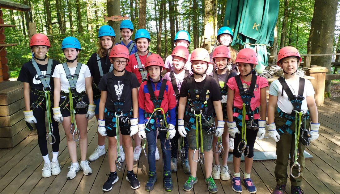 Gleich in der ersten Ferienwoche ging es im Rahmen der Ferienspiele der Gemeinde Hirzenhain für 14 Kinder und Jugendliche mit der Kinder- und Jugendförderung Hirzenhain (JuKi) in den Kletterwald nach Steinau. Nach einer kurzen Einweisung durch die Betreuer vor Ort konnten die Mädels und Jungs eigenständig die unterschiedlichen Parcours erkunden.