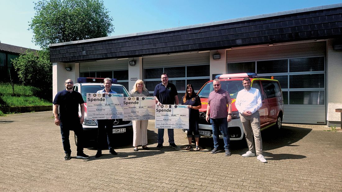 Ein Zeichen für die Gemeinschaft setzte die FCG dann auch bei der Auswahl der Spendenempfänger. 900 Euro Erlös wurden aufgeteilt auf drei wichtige Einrichtungen in Hirzenhain: Die Jugendfeuerwehr, die Kindertagesstätte Himmelsstürmer und die Hirzenhainer Werkstätten der Teilhabe Wetterau erhielten jeweils 300 Euro. „Wir wollen mit unseren Spenden die Arbeit der Menschen in diesen Einrichtungen wertschätzen, die viel zu oft als selbstverständlich genommen wird“, betonte Walter Reuning bei der Spendenübergabe. Die Freude über die unerwartete Unterstützung war entsprechend groß. Claus Nagel und Sabrina Weidling von der Freiwilligen Feuerwehr Hirzenhain berichteten stolz, dass viele Nachwuchskräfte in die Freiwillige Feuerwehr aufsteigen. „Da können wir die Spende für deren Ausrüstung gut gebrauchen“, so Nagel. Angelika Helwig, Leiterin der Kita, möchte die Spende in neu Fachliteratur investieren, die sonst oft zu kurz kommt. Und auch Thomas Schmitter, Bereichsleiter Arbeit und Bildung bei der Teilhabe Wetterau, hat schon Ideen, wofür die Spende genutzt werden kann. „Da sie explizit als Wertschätzung für die Angestellten gedacht ist, soll sie auch genau dort ankommen“, sagte er.