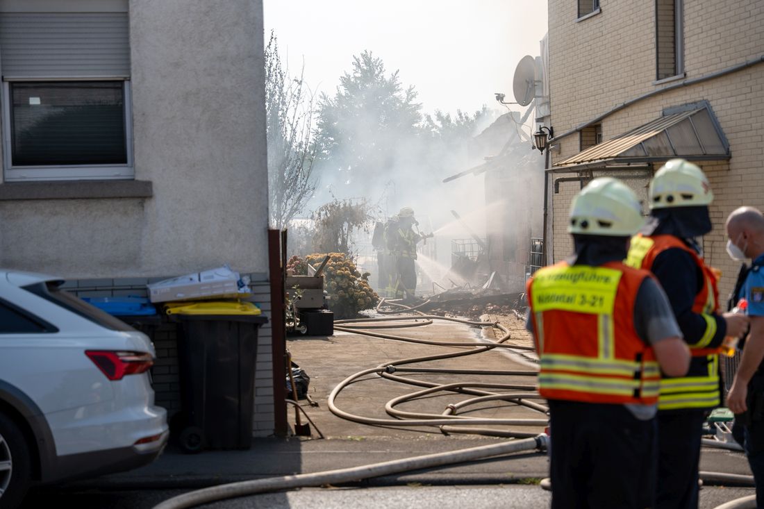 In Niddatal-Ilbenstadt ist am Donnerstag, 14.08.2025, eine unterkellerte Scheune hinter einem Wohnhaus in Brand geraten. Rund 60 Einsatzkräfte der Feuerwehr waren vor Ort, um die Flammen unter Kontrolle zu bringen. Auch zwei Streifenwagen der Polizei und ein Rettungswagen waren im Einsatz.
