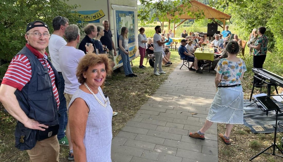 Die Wetterauer GRÜNEN hatten an einen der schönsten Orte der Region eingeladen: In die Salzwiesen am NABU-Haus in Ortenberg-Selters. Angereist aus allen Ecken der Wetterau, genossen GRÜNE und Gäste strahlenden Sonnenschein am Ufer der Nidder. Für das leibliche Wohl sorgten Queerbeet aus Reichelsheim und der Magerhof aus Karben.