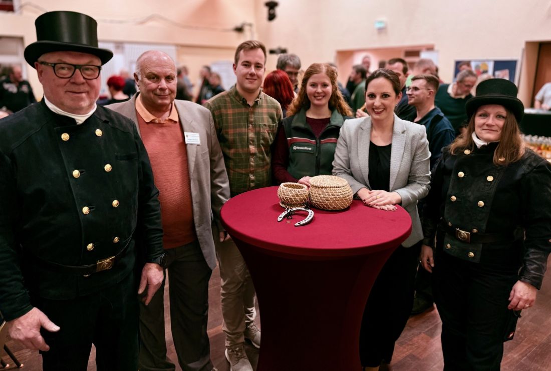 Die Kombination aus Neujahrsempfang und Bürgerversammlung war auch im zweiten Jahr ein voller Erfolg. Das Weckesheimer Bürgerhaus füllte sich bereits rund dreißig Minuten vor Beginn, so dass schon vor dem eigentlichen Programm viele Besucherinnen und Besucher die Zeit nutzten, um sich an den aufgebauten Infoständen aus erster Hand zu informieren. Doch zunächst wurden sie am Eingang von Bürgermeisterin Lena Herget persönlich empfangen und von den anwesenden Schornsteinfegern Isabell Gies und Reiner Scholl mit Glücksbringern zum Jahresauftakt versorgt. Mit einem Cent und einem Miniatur-Schornsteinfeger in den Händen konnten sie dann bereits dem ersten Musikstück des Musikvereins Reichelsheim lauschen, der die Veranstaltung mit einem würdevollen musikalischen Rahmen ausstattete.